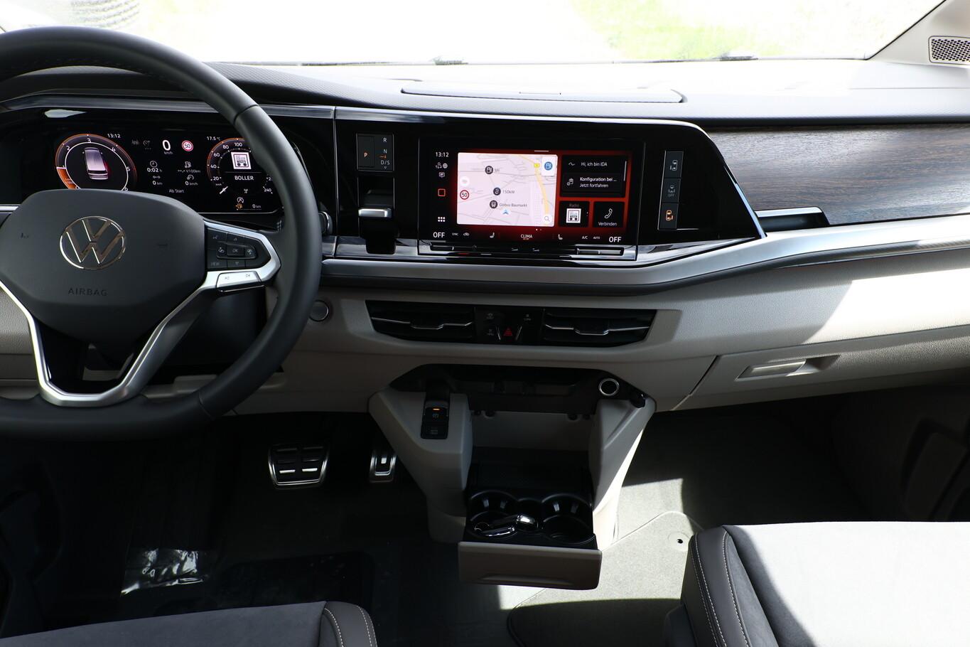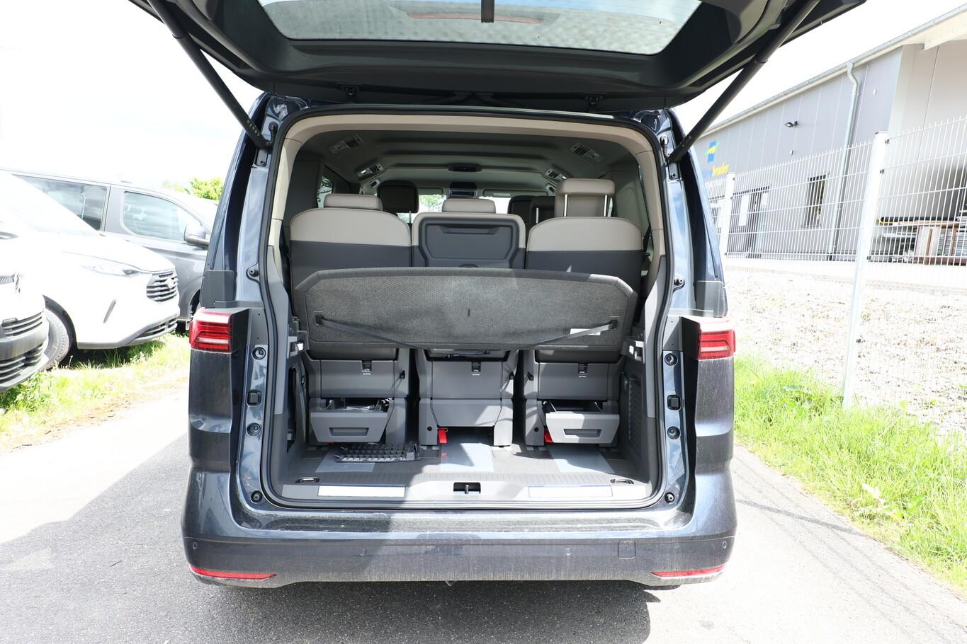 Audio-Navigationssystem Discover Pro (Touchscreen-Farbdisplay 10", inkl. Streaming & Internet), Anhängerkupplung klappbar (elektr. Entriegelung), Fahrassistenz-Paket Basic (Service-System: Intelligente Fahrzeugvernetzung (Car2X) / Fahrassistenz-System: Autom. Distanzregelung (ACC inkl. Stop&Go-Funktion) / Fahrassistenz-System: Spurwechselassistent (Side Assist) mit Auspark-Assistent und Ausstiegswarnung), Heckklappe elektr. betätigt (öffnen + schliessen) (Servoschliessung Heckklappe), Multifunktionstisch verschiebbar, Schließ-/Startsystem Keyless Advanced mit Safesicherung, Verglasung hinten abgedunkelt (65 %), Schmutzfänger vorn und hinten, Fernlicht Automatisch für Matrix-Scheinwerfer, Handschuhfach abschließbar, Heckklappe mit Soft-Close-Funktion, Kreuzungsassistent vorn, LM-Felgen 6,5x17 (Dundrod, schwarz), Reifen 235/55 R17, Mobile Online Dienste Vorbereitung We Connect und We Connect Plus (Vorbereitung Onlinedienste), Sitz-Paket: 7-Sitzer, 2-2-3 (2 Einzelsitze, 2 Einzelsitze, 3 Einzelsitze) (Sitze im Lade-/FG-Raum: 1.Reihe, 2 Einzelsitze / Sitze im Lade-/FG-Raum: 2.Reihe, 3 Einzelsitze), Audiosystem Ready 2 Discover (Touchscreen-Farbdisplay 10", inkl. Streaming & Internet), Außenspiegel schwarz lackiert, Blinkleuchten LED in Außenspiegel integriert, Bodenbelag im Lade-/Fahrgastraum Teppich, Bordwerkzeug und Reifen-Reparaturkit, Chromleisten seitlich und Heckklappe unten, Diebstahlsicherung für Räder (Felgenschlösser), Digital Cockpit Pro (Instrumentenanzeige Digital), Fahrassistenz-System: Ausweich-Assistent und Abbiege-Assistent, Fenster im Lade-/FG-Raum: - feststehend, vorn links, Fenster im Lade-/FG-Raum: - feststehend, vorn rechts, Frontscheibe Verbundglas getönt, Funkschlüssel (2), Handschuhfach beleuchtet, Innenausstattung: Dekoreinlagen Dark Woodgrain Optic, Innenleuchtenkonzept im Fahrgastraum, Innenspiegel mit Abblendautomatik, Intelligent Speed Assist inkl. Geschwindigkeitsbegrenzer, Karosserie/Aufbau: Bus, Ladekantenabdeckung in Kunststoff, mit Edelstahleinsatz, Laderaumunterteilung und Gepäcksicherungsnetz, Lautsprecher (8), Lichtleiste zwischen Scheinwerfer, Mobile Online Dienste App-Connect inkl. App-Connect Wireless (Apple CarPlay, Android Auto), Motor 2,0 Ltr. - 110 kW TDI, Pedale Edelstahl, Radioempfang digital (DAB+), Radstand 3124 mm, Schlechtwetter-Licht, Schubladen unter Rücksitze außen und 2 Abfallbehälter, Sitzbezug / Polsterung: ArtVelours / Kunstleder, Sitze im Fahrerhaus: 4 Armlehnen, Lendenwirbelstützen elektr. und Klapptische, Sitze im Fahrerhaus: Beifahrersitz höhenverstellbar, Sitze im Fahrerhaus: Fahrersitz höhenverstellbar, Sitze im Lade-/FG-Raum: 1.Reihe mit 2 Armlehnen innen (abnehmbar), Sitze im Lade-/FG-Raum: 2.Reihe mit Vorbereitung für 2 Armlehnen innen, Sonnenblenden mit Spiegel (beleuchtet), Umfeldbeleuchtung seitlich mit Projektionsfunktion, Umfeldleuchte in Heckklappe und Ambiente-Beleuchtung (30 Farben), Vorbereitung für Alkohol-Wegfahrsperre (Alcolock), Warnanlage für Sicherheitsgurte vorn und hinten, Mobiltelefon Schnittstelle Bluetooth, Multimedia-Schnittstelle 2 x USB vorn und 4 x USB-Ladeanschluß Fahrgastraum (Typ C), Sprachassistent IDA und elektronische Sprachverstärkung, Anti-Blockier-System (ABS), Fahrassistenz-System: Bremsassistent (HBA), Antriebsart: Frontantrieb, Elektron. Stabilitäts-Programm (ESP) mit Bremskraftverstärker elektro-mechanisch, Getriebe 7-Gang - Doppelkupplungsgetriebe DSG, Klimaanlage Climatronic 3-Zonen inkl. Fondbedienung, Zusatzheizung, Airbag Fahrer-/Beifahrerseite, Beifahrerairbag abschaltbar, Fensterheber elektrisch vorn, Seitenairbag / Kopfairbag / Center-Airbag vorn und Kopfairbag hinten, Sitze im Fahrerhaus: Fahrer- und Beifahrersitz heizbar, Schiebetür Lade-/Fahrgastraum links elektr. betätigt, Schiebetür Lade-/Fahrgastraum rechts elektr. betätigt, Fahrassistenz-System: Verkehrszeichenerkennung, Rückfahrkamera, Notrufsystem, Lenkrad (Leder) mit Multifunktion und Schaltfunktion, Servolenkung elektro-mechanisch, geschwindigkeitsabhängig, Fahrassistenz-System: Dynamische Fernlichtregulierung (Dynamic Light Assist), Heckleuchten LED, Matrix-LED-Scheinwerfer (IQ.Light), Regensensor, Tagfahrlicht und Assistenzfahrlicht mit Coming Home / Leaving Home, Fahrassistenz-System: Parklenkassistent (Park Assist) inkl. Einparkhilfe vorn und hinten, Fahrassistenz-System: Ablenkungs- und Müdigkeitserkennung, Fahrassistenz-System: Spurhalteassistent (Lane Assist), Fahrassistenz-System: Umfeldbeobachtungssystem (Front Assist) mit City-Notbremsfunktion, Reifenkontroll-Anzeige, Diebstahl-Warnanlage + Innenraumüberwachung / Abschleppschutz + Back-up-Horn, Rußpartikelfilter